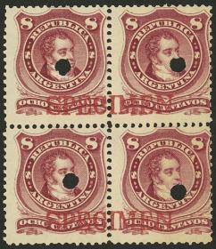 82 ARGENTINA - EMISIONES GENERALES Cuadro / Sin usar (sin goma) N°Cat.: GJ.54A MB. GJ.54A, 1877 8c. Rivadavia, cuadro con taladrado y sobrecargas SPECIMEN rojas, excelente calidad, raro! Precio inicial: US$ 50 Precio actual: US$ 50 Oferte US$ 56 o más