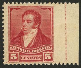 124 ARGENTINA - EMISIONES GENERALES Cuadro / Nuevo o Nuevo Mint N°Cat.: GJ.623 var. MB. GJ.623, 1926 5c. San Martín (Centenario del Correo), cuadro SIN DENTAR en el borde derecho, excelente! Precio inicial: US$ 30 Precio actual: US$ 30 Oferte US$ 30 o más