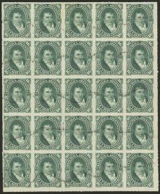 81 ARGENTINA - EMISIONES GENERALES Multiplo / Usado N°Cat.: GJ.50 MB. GJ.50, 1876 Belgrano 16c., hermoso bloque de 25 sellos usados con obliteración a pluma, excelente! Precio inicial: US$ 150 Precio actual: US$ 150 Oferte US$ 150 o más