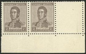 181 ARGENTINA - EMISIONES GENERALES Pareja / Nuevo Mint N°Cat.: GJ.1301 var. MB. GJ.1301, Cuadro esquina de hoja con DOBLE DENTADO inferior que produce 2 complementos chicos, MB calidad! Precio inicial: US$ 30 Precio actual: US$ 30 Oferte US$ 30 o más