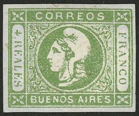 4 ARGENTINA - CABECITAS Sello suelto / Sin usar (sin goma) N°Cat.: GJ.16 Valor de catál.: US$220 MB. GJ.16, 4R. Verde, nuevo sin goma, muy buena calidad! Precio inicial: US$ 110 Precio actual: US$ 110 Oferte US$ 110 o más