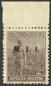 804 ARGENTINA - SERVICIO OFICIAL Cuadro / Nuevo Mint N°Cat.: GJ.108 MB. GJ.108, Ministerio de Agricultura, letras perfiladas, Próceres y Riquezas Nacionales 2c. cuadro con sobrecarga retintada al dorso, MB calidad Precio inicial: US$ 6 Precio actual: US$ 6 Oferte US$ 6 o más