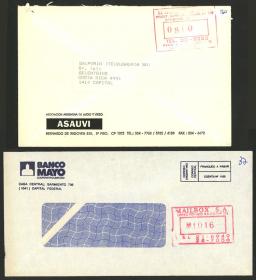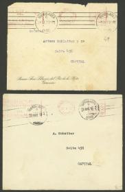936 ARGENTINA - HISTORIA POSTAL Lote / N°Cat.: MB. Frente y sobre circulados en 1930 en Buenos Aires, con franqueos mecánicos publicitarios del Banco Sirio Libanés del Río de la Plata, MB calidad Precio inicial: US$ 25 Precio actual: US$ 25 Oferte US$ 25 o más