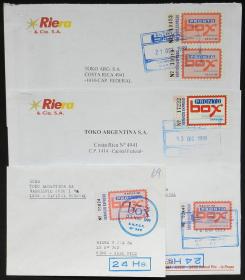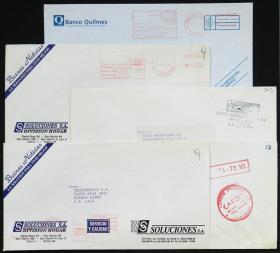 898 ARGENTINA - CORREOS PRIVADOS Lote / N°Cat.: MB. SOUTH POSTAL: 5 sobres circulados con marcas de esta empresa, MB calidad Precio inicial: US$ 3 Precio actual: US$ 3 Oferte US$ 3 o más