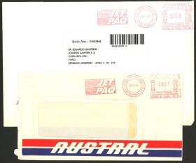 881 ARGENTINA - CORREOS PRIVADOS Lote / N°Cat.: MB. JET PAQ: 2 sobres circulados en 1998, con marcas de esta empresa, MB calidad Precio inicial: US$ 4 Precio actual: US$ 4 Oferte US$ 5 o más