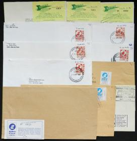 872 ARGENTINA - CORREOS PRIVADOS Lote / N°Cat.: MB. BLER: 11 sobres circulados aproximadamente entre 1994 y 1997, con marcas de esta empresa, MB calidad Precio inicial: US$ 5 Precio actual: US$ 5 Oferte US$ 5 o más