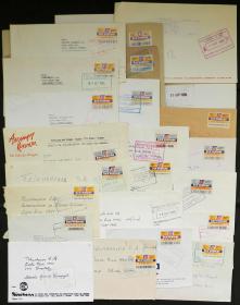 890 ARGENTINA - CORREOS PRIVADOS Lote / N°Cat.: MB. OCA: más de 540 sobres circulados con estampillas o etiquetas de esta empresa, MB calidad Precio inicial: US$ 40 Precio actual: US$ 40 Oferte US$ 40 o más