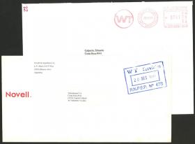 887 ARGENTINA - CORREOS PRIVADOS Lote / N°Cat.: MB. NEW CODE: 5 sobres circulados aproximadamente entre 1995 y 1996 con marcas de esta empresa, MB calidad Precio inicial: US$ 5 Precio actual: US$ 5 Oferte US$ 5 o más