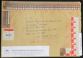 992 ARGENTINA - HISTORIA POSTAL Sobre / N°Cat.: MB. Sobre certificado circulado el 27/MAY/2015 desde 30 de Agosto a La Plata, franqueado con 24x $2 "Recuperación de Empresas Nacionales" y 20x $2 "Integración Latinoamericana" (total $88), MB calidad Precio inicial: US$ 10 Precio actual: US$ 10 Oferte US$ 10 o más