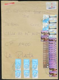 991 ARGENTINA - HISTORIA POSTAL Sobre / N°Cat.: MB. Sobre certificado circulado el 5/FEB/2015 desde Colón a La Plata, fraqueado con 53x $1 "Gasoducto Argentina-Bolivia" y 8x $10 "Asignación Universal por Hijo" (total $133), MB calidad, espectacular! Precio inicial: US$ 6 Precio actual: US$ 6 Oferte US$ 6 o más