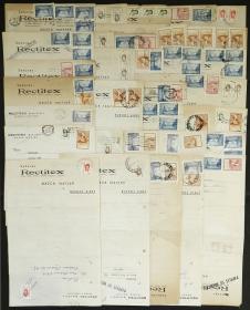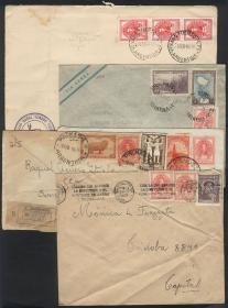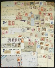 946 ARGENTINA - HISTORIA POSTAL Lote / N°Cat.: MB. 60 sobres circulados entre 1941 y 1956, franqueados con sellos de la serie básica "Próceres y Riquezas Nacionales" (primera y segunda parte, MB calidad en general Precio inicial: US$ 25 Precio actual: US$ 25 Oferte US$ 28 o más