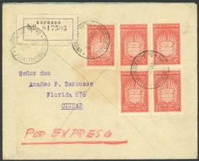 937 ARGENTINA - HISTORIA POSTAL Sobre / N°Cat.: MB. Sobre expreso enviado el 25/DIC/1930 de Paraná a Concepción del Uruguay, con 5 y 30c. "Revolución del 6 de Septiembre de 1930", MB calidad Precio inicial: US$ 40 Precio actual: US$ 40 Oferte US$ 40 o más