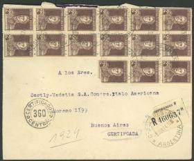 932 ARGENTINA - HISTORIA POSTAL Sobre / N°Cat.: Buena Sobre certificado enviado el 3/JUN/1924 desde Dolores (Córdoba) a Buenos Aires, franqueado con 15x 2c. "San Martín" (total 30c.)(un sello con esquina rota), espectacular y raro! Precio inicial: US$ 20 Precio actual: US$ 20 Oferte US$ 20 o más