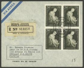 956 ARGENTINA - HISTORIA POSTAL Sobre / N°Cat.: MB. 22/DIC/1951: Buenos Aires - Neully Sur Seine (Francia), sobre certificado, con cuadro de $2,45+$7,55 "Pro Fundación Eva Perón - La Piedad de Miguel Angel", con matasello PDE, MB calidad Precio inicial: US$ 50 Precio actual: US$ 50 Oferte US$ 50 o más