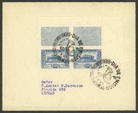 951 ARGENTINA - HISTORIA POSTAL Sobre / N°Cat.: MB. Sobre circulado en Buenos Aires el 1/SEP/1945, franqueado con pareja de 20c. "Centenario del Fallecimiento de Rivadavia" con 2 complementos arriba, con matasello PDE, MB calidad Precio inicial: US$ 20 Precio actual: US$ 20 Oferte US$ 20 o más