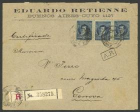 939 ARGENTINA - HISTORIA POSTAL Sobre / N°Cat.: MB. Sobre certificado enviado a Praga desde Buenos Aires el 16/MAY/1933, con franqueo de 35c. formado por sellos de varias emisiones, MB calidad Precio inicial: US$ 25 Precio actual: US$ 25 Oferte US$ 25 o más