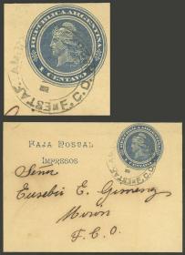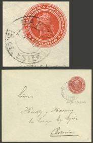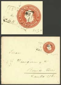 915 ARGENTINA - HISTORIA POSTAL Sobre / N°Cat.: MB. Sobre (E.P. 5c.) enviado a Buenos Aires en septiembre 1899, con matasello fechador rectangular "ESTAF. AMB. F.C.S. Nº43", MB calidad Precio inicial: US$ 50 Precio actual: US$ 50 Oferte US$ 50 o más