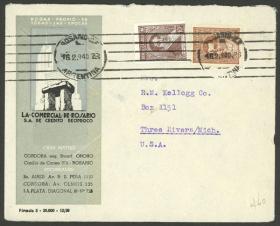 945 ARGENTINA - HISTORIA POSTAL Sobre / N°Cat.: MB. 16/FEB/1940: Rosario - Three Rivers (EE.UU.), sobre franqueado con 15c., con publicidad de "La Comercial de Rosario, S.A. de Crédito Recíproco" impresa, MB calidad Precio inicial: US$ 25 Precio actual: US$ 25 Oferte US$ 25 o más