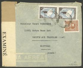 949 ARGENTINA - HISTORIA POSTAL Sobre / N°Cat.: Buena Sobre enviado a Canada desde Buenos Aires el 13/MAY/1944, franqueado con $2,05 (incluye pareja del Mapa 1P. en PAPEL TIZADO), con faja de censura, mínimos defectitos, muy lindo! Precio inicial: US$ 25 Precio actual: US$ 25 Oferte US$ 25 o más
