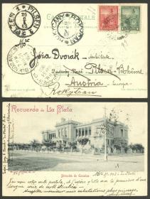917 ARGENTINA - HISTORIA POSTAL Sobre / N°Cat.: MB. TP enviada el 29/MAY/1903 a Pilsen (Austria) y de ahí reenviada a Rokytzan, franqueada con 1 y 5c. "Libertad con Escudo", con matasello de Estafeta Ambulante y varias marcas de tránsito, MB calidad Precio inicial: US$ 25 Precio actual: US$ 25 Oferte US$ 25 o más