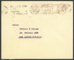 944 ARGENTINA - HISTORIA POSTAL Sobre / N°Cat.: MB. Sobre enviado desde Buenos Aires a San Isidro el 31/MAY/1939, con franqueo mecánico publicitario del Banco Argentino Uruguayo de 5c., MB calidad Precio inicial: US$ 10 Precio actual: US$ 10 Oferte US$ 10 o más