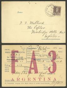 933 ARGENTINA - HISTORIA POSTAL Sobre / N°Cat.: MB. Tarjeta QSL enviada el 26/OCT/1926 de Rosario a Inglaterra, con 2c. "San Martín, sin punto", MB calidad Precio inicial: US$ 25 Precio actual: US$ 25 Oferte US$ 25 o más