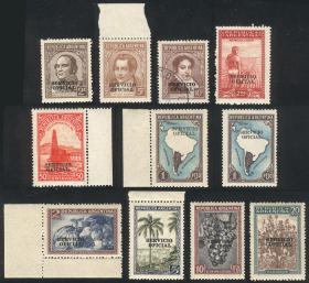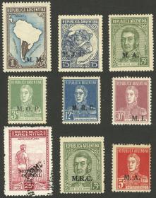 866 ARGENTINA - SERVICIO OFICIAL Lote / Usado o sin usar N°Cat.: MB. Servicio Oficial, 9 sellos (1 usado) con sobrecarga retintada al dorso, MB calidad Precio inicial: US$ 5 Precio actual: US$ 5 Oferte US$ 5 o más