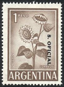 857 ARGENTINA - SERVICIO OFICIAL Sello suelto / Nuevo con bisagra N°Cat.: GJ.739 Valor de catál.: US$ 7 MB. GJ.739, 1 peso Girasol, sobrecarga tipo XIII vertical, de arriba hacia abajo, papel mate importado, MB calidad Precio inicial: US$ 4 Precio actual: US$ 4 Oferte US$ 4 o más