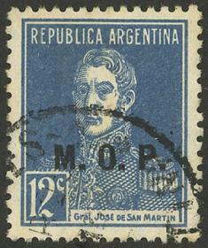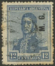 839 ARGENTINA - SERVICIO OFICIAL Sello suelto / Usado N°Cat.: GJ.546 Valor de catál.: US$ 10 MB. GJ.546, 12c. San Martín, sin punto, Ministerio de Obras Públicas, usado, MB calidad Precio inicial: US$ 5 Precio actual: US$ 5 Oferte US$ 5 o más