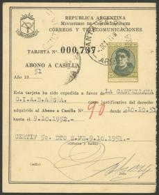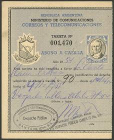 906 ARGENTINA - ENTEROS POSTALES Entero postal / Usado N°Cat.: GJ.AAC- 28 Valor de catál.: US$ 25 MB. GJ.AAC- 28, 60 pesos Posadas, Abono a Casilla, usada en 1954 en Santa Fe, MB calidad Precio inicial: US$ 12 Precio actual: US$ 12 Oferte US$ 12 o más