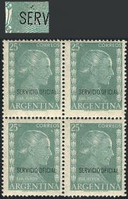 852 ARGENTINA - SERVICIO OFICIAL Cuadro / Nuevo Mint N°Cat.: GJ.691 Buena-MB GJ.691, 25c Eva Perón impreso en papel nacional en cuadro, el sello inferior derecho con VARIEDAD acento sobre la primera "E" de SERVICIO, MB! Precio inicial: US$ 5 Precio actual: US$ 5 Oferte US$ 5 o más
