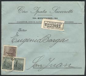 923 ARGENTINA - HISTORIA POSTAL Sobre / N°Cat.: MB. Sobre certificado enviado en AGO/1913 de Buenos Aires a San Juan con franqueo de 22c. (Labrador 2c. + pareja 10c.), MB calidad! Precio inicial: US$ 25 Precio actual: US$ 25 Oferte US$ 25 o más