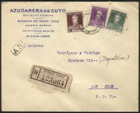 934 ARGENTINA - HISTORIA POSTAL Sobre / N°Cat.: MB. Sobre certificado con AR enviado el 6/DIC/1928 de Buenos Aires a San Juan con franqueo de 37c.: 2c. + 10c. + 25c. de la serie San Martín sin punto, excelente calidad! Precio inicial: US$ 25 Precio actual: US$ 25 Oferte US$ 25 o más
