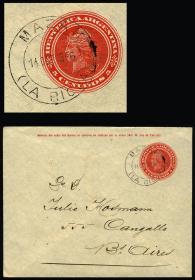 913 ARGENTINA - HISTORIA POSTAL Entero postal / N°Cat.: Buena Sobre (EP) de 5c. + franqueo adicional (total 26c), enviado certificado el 21/MAR/1898 de Bs.Aires a Vileta (Paraguay), con arribo al dorso el 2/ABR, con un agujero de archito, muy bonito! Precio inicial: US$ 25 Precio actual: US$ 25 Oferte US$ 25 o más