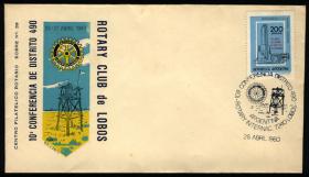 967 ARGENTINA - HISTORIA POSTAL Sobre / N°Cat.: MB. 26/ABR/1980, sobre y matasello especiales, conmemorativos de una conferencia del Rotary Club de Lobos, MB calidad Precio inicial: US$ 1 Precio actual: US$ 1 Oferte US$ 1 o más