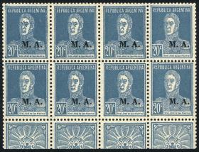 801 ARGENTINA - SERVICIO OFICIAL Multiplo / Nuevo Mint N°Cat.: GJ.105 Valor de catál.: 4+50% Buena-MB GJ.105, 20c San Martín impreso en tipografía, bloque de 8 con BdH MINT!!! Precio inicial: US$ 3 Precio actual: US$ 3 Oferte US$ 3 o más