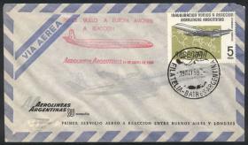 962 ARGENTINA - HISTORIA POSTAL Sobre / N°Cat.: MB. Sobre enviado en el Primer Vuelo a Europa en Aviones a Reacción de Aerolíneas Argentinas, el 19/MAY/1959, MB calidad Precio inicial: US$ 5 Precio actual: US$ 5 Oferte US$ 5 o más