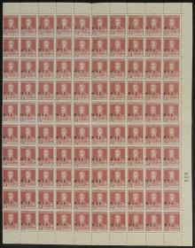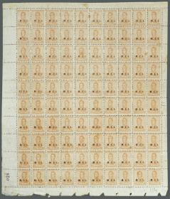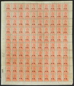 821 ARGENTINA - SERVICIO OFICIAL Multiplo / Sin usar (sin goma) N°Cat.: GJ.370 Valor de catál.: 100+ Buena GJ.370, 1c. San Martín, filigrana hexágonos verticales, dentado 13¼, plancha de 100 completa, con 6 sellos con variedades (anotadas en el borde de hoja), con algunos pequeños pliegues, sin usar, sin goma, con manchitas de óxido, rara! Precio inicial: US$ 35 Precio actual: US$ 35 Oferte US$ 35 o más