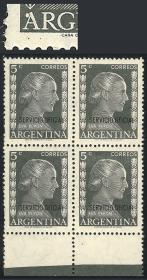 851 ARGENTINA - SERVICIO OFICIAL Cuadro / Nuevo Mint N°Cat.: GJ.685 MB. GJ.685, 5c. Eva Perón, cuadro con un sello con variedad punto antes de la primera "A" de "ARGENTINA", con borde de hoja, MB calidad Precio inicial: US$ 10 Precio actual: US$ 10 Oferte US$ 10 o más
