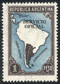 847 ARGENTINA - SERVICIO OFICIAL Cuadro / Nuevo Mint N°Cat.: GJ.648 MB. GJ.648, 1 peso Mapa sin Límites, cuadro con un sello con variedad mancha debajo de la "A" de "OCÉANO", MB calidad Precio inicial: US$ 10 Precio actual: US$ 10 Oferte US$ 10 o más