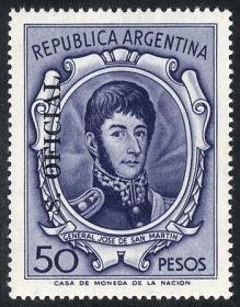 864 ARGENTINA - SERVICIO OFICIAL Sello suelto / Nuevo Mint N°Cat.: GJ.776 Valor de catál.: US$ 6 MB. GJ.776, 50 pesos San Martín, MB calidad Precio inicial: US$ 4 Precio actual: US$ 4 Oferte US$ 4 o más