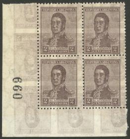42 ARGENTINA - EMISIONES GENERALES Cuadro / Nuevo o Nuevo Mint N°Cat.: GJ.432 var. MB. GJ.432, 1917 2c. San Martín dentado 13½, cuadro esquina de hoja con var. DOBLE IMPRESIÓN, una invertida, espectacular y de calidad excelente! NOTA: Esta variedad aún no está catalogada (en este dentado) y será incluída en la próxima edición del catálogo GJ. Precio inicial: US$ 100 Precio actual: US$ 100 Oferte US$ 111 o más | |