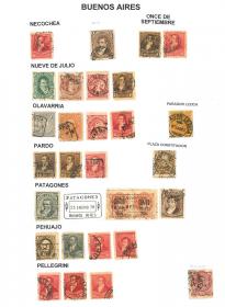 101 ARGENTINA - LOTES Y COLECCIONES Lote / Usado N°Cat.: Buena-MB MATASELLOS ANTIGUOS: Colección en hojas con muchos cientos de sellos y fragmentos con matasellos del siglo XIX, incluyendo material raro e interesante, marcas ovales, estafetas ferroviarias, unos pocos clásicos, y mucho más, todo prolijamente montado en hojas y clasificado por localidades, muy alto valor al detalle, oportunidad! ATENCIÓN: Recomiendo mirar TODAS las fotos de este conjunto, todo el material incluído está escaneado. Precio inicial: US$ 300 Precio actual: US$ 300 Oferte US$ 330 o más | |