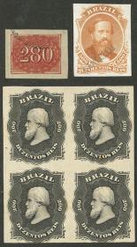 137 BRASIL - EMISIONES GENERALES Sello suelto / Usado N°Cat.: Sc.39 Valor de catál.: US$110 MB. Sc.39, 1861 280r. rojo, suave matasello, márgenes muy amplios, excelente color. Además Sc.60, prueba en el color adoptado con marca "CANCELED", y Sc. 59, prueba en cuadro, todo de calidad lujo, oportunidad! Precio inicial: US$ 100 Precio actual: US$ 111 Oferte US$ 123 o más | |