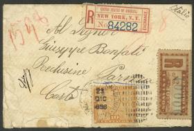 295 PANAMÁ - HISTORIA POSTAL Sobre / N°Cat.: MB. Sobre enviado el 23/DIC/1898 a Italia con franqueo de 10c. con matasello duplex "Agencia Postal Nacional - Panamá" y sello de certificación de 10c. de Colombia, marca y etiqueta de tránsito por New York y Bologna, y arribo a Parma el 23/ENE/1899, MB! Precio inicial: US$ 100 Precio actual: US$ 100 Oferte US$ 111 o más | |