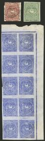 196 ECUADOR - EMISIONES GENERALES Multiplo / Sin usar (sin goma) N°Cat.: Sc.2 MB. Sc.2, 1865/72 ½r. Ultramar, bloque de 10 esquina de hoja superior derecha, MB! Incluímos además un sello de 1R. verde (Sc.5) sin garantía + 4R. rojo (Sc.6, usado) con peladura al dorso, atractivo conjunto! Precio inicial: US$ 100 Precio actual: US$ 100 Oferte US$ 111 o más | |