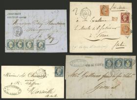 217 FRANCIA - HISTORIA POSTAL Sobre / N°Cat.: Buena-MB 29 Cartas o cubiertas circuladas entre 1844 y 1873, la gran mayoría de muy buena calidad, se ven lindos franqueos y matasellos de interés! ATENCIÓN: Recomiendo mirar TODAS las fotos de este conjunto, todo el material incluído está completamente escaneado. Precio inicial: US$ 100 Precio actual: US$ 100 Oferte US$ 111 o más | |