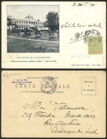 244 INDOCHINA - HISTORIA POSTAL Sobre / N°Cat.: MB. RARO DESTINO: Hermosa tarjeta postal con vista: "Jardín del palacio del gobernador general en Saigón" enviada el 12/AGO/1904 a Argentina con franqueo de 5c. (Sc.7), MB calidad, destino inusual! Precio inicial: US$ 50 Precio actual: US$ 50 Oferte US$ 56 o más | |