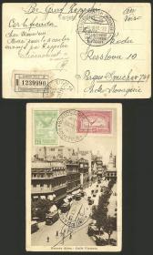 93 ARGENTINA - HISTORIA POSTAL - VUELOS Sobre / N°Cat.: MB. 8/OCT/1932 Buenos Aires a Checoslovaquia, tarjeta postal enviada certificada por Zeppelin con franqueo de 1,02P., tiene tránsito por Friedrichshafen el 19/OCT y arribo el 20, MB calidad, inusual! Precio inicial: US$ 100 Precio actual: US$ 100 Oferte US$ 111 o más | |