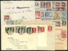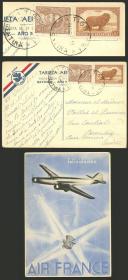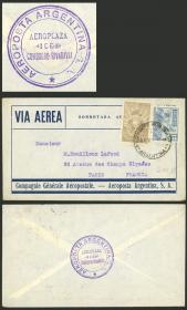 84 ARGENTINA - HISTORIA POSTAL - VUELOS Sobre / N°Cat.: MB. 45 Sobres o tarjetas circulados por correo aéreo (muchos certificados) entre 1926 y 1939, incluye franqueos altos, vuelos por Zeppelin, franqueos con sellos con PERFINS, muchos al exterior pero también algunos vuelos internos interesantes, gran diversidad y en general de calidad excelente. Estimo un valor de vental al detalle de US$2.000 a 2.500, oportunidad! IMPORTANTE: recomiendo mirar TODAS las fotos de este conjunto, todo el material incluído está escaneado de ambos lados! Precio inicial: US$ 900 Precio actual: US$ 900 Oferte US$ 991 o más | |